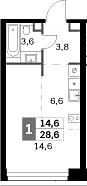 Площадь от 28.6 м2