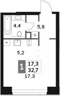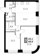 Площадь от 43.5 м2