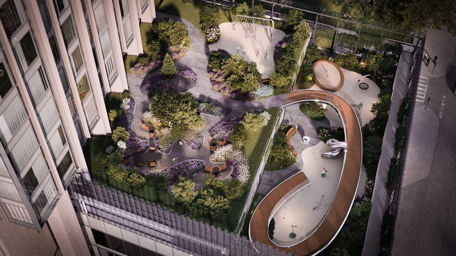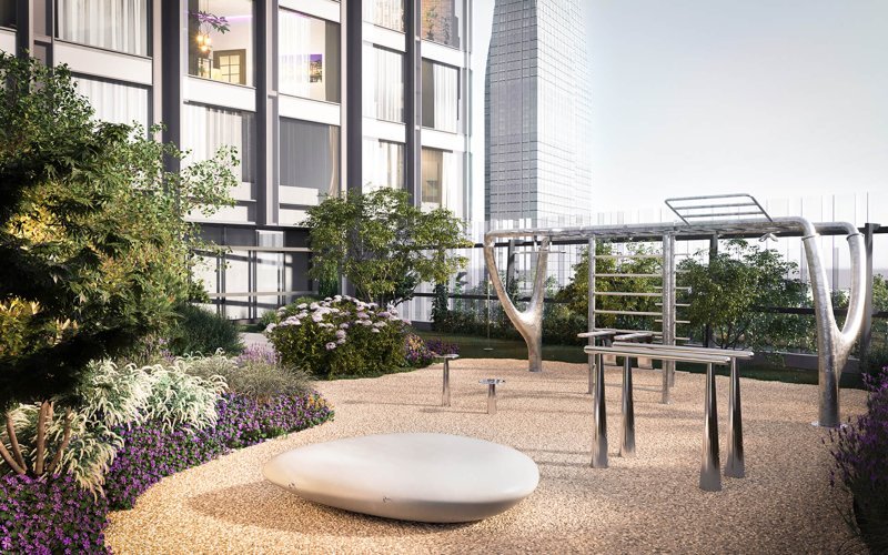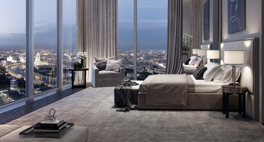В жилом комплексе представлено множество планировочных решений — от 1-комнатных до 5-комнатных квартир, среди которых квартиры с террасами и дровяными каминами. Высота потолков с 79 по 81 этаж составляет 3,8 метров, а на остальных этажах — 3,23 метра.