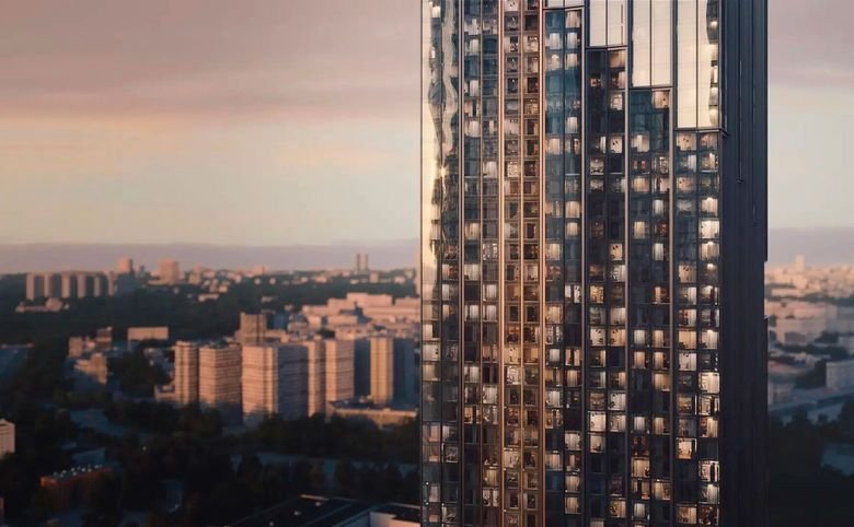 Дом Дау - самый высокий небоскреб в России. Идеальное расположение. Все стандарты премиум-класса: местоположение, отделка лобби, паркинг, круглосуточная консьерж-служба, быстрые лифты с