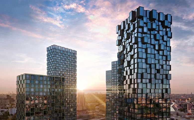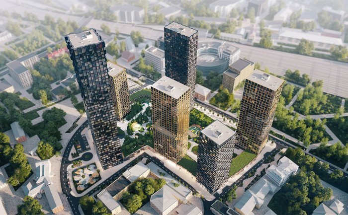Проект представляет собой 6 ультрасовременных башен высотой до 48 этажей. Концепцию проекта разработало московское бюро ADM.