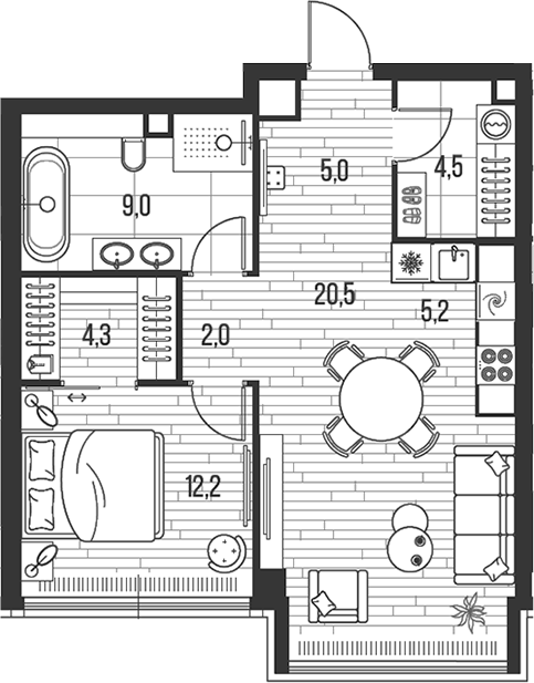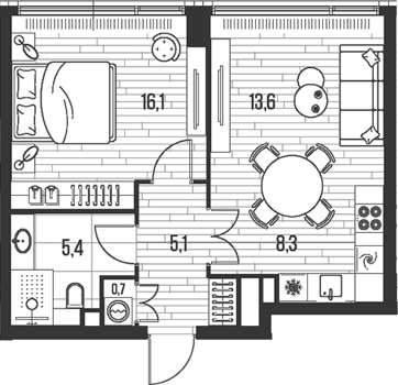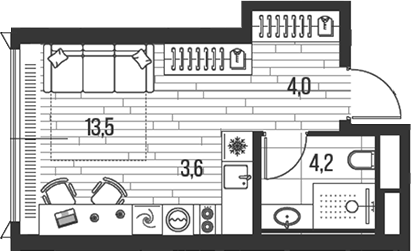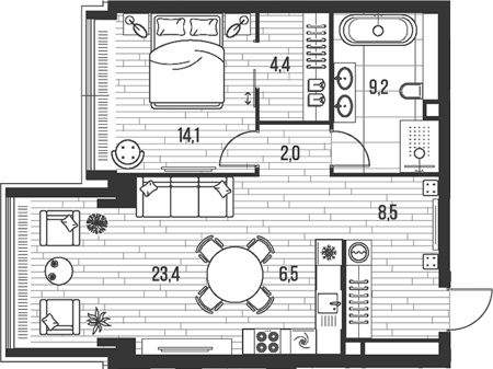 Площадь от 35.4 м2