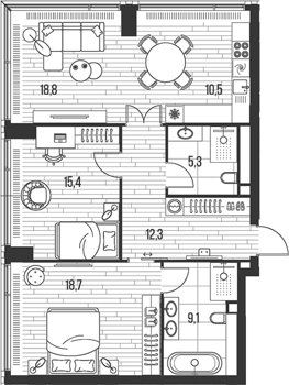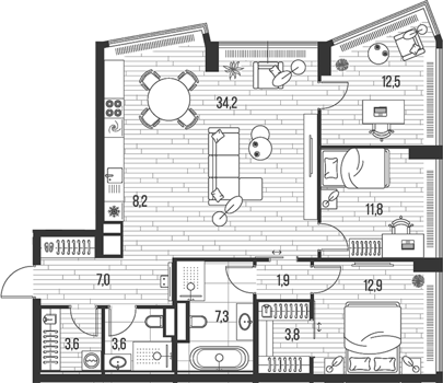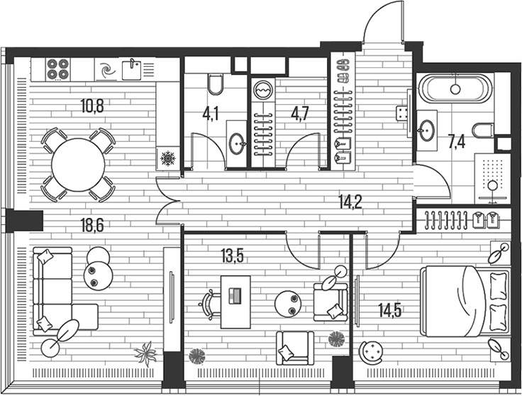 Площадь от 70.5 м2