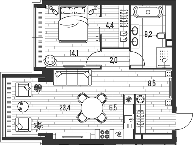 Площадь от 23.9 м2