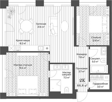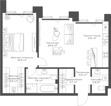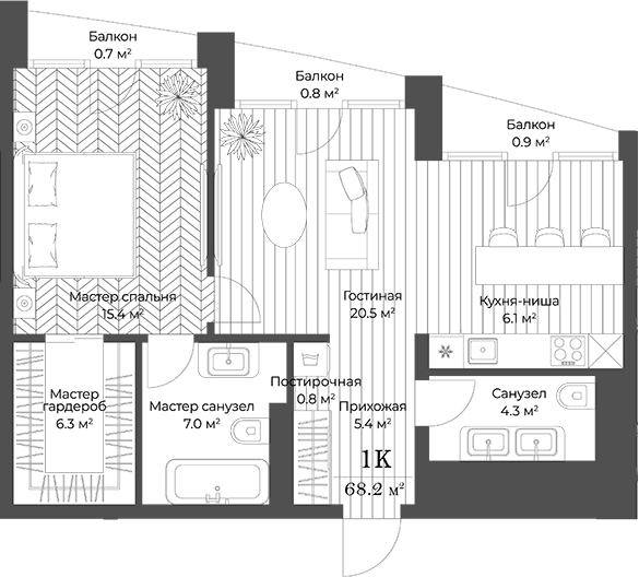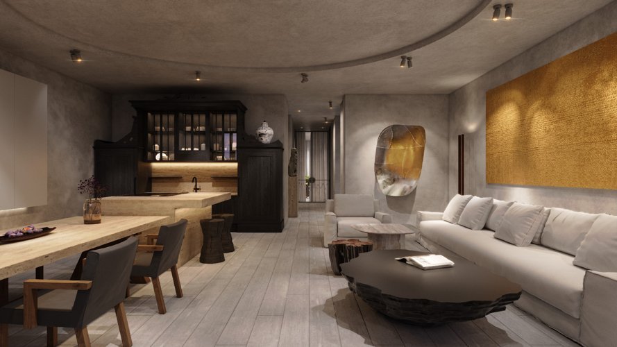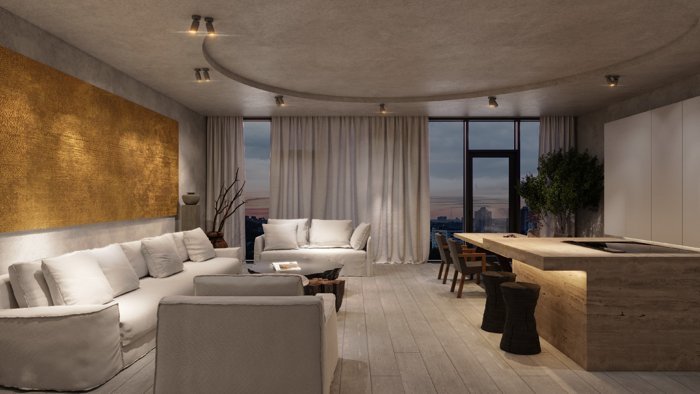 Проект представляет собой клубный дом класса DeLuxe. Ступенчатая внешняя фактура задает визуальный ритм, а матовый архитектурный бетон в облицовке усиливает ощущение чистоты и мягкости. Фасад продолжает основную концепцию: обилие стекла и разнообразие форм отсылают к образу водного потока. Акценты из алюминия и стали придают утонченную строгость линиям. Общественные пространства вдохновлены парижскими L’ Atelier Brancusi и Музеем Африки и Океании Musée du Quai Branly и разработаны известным дизайнером Натальей Белоноговой.