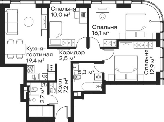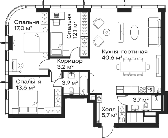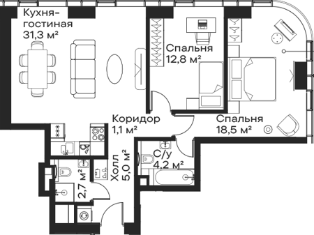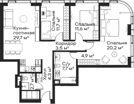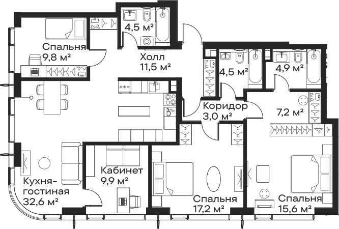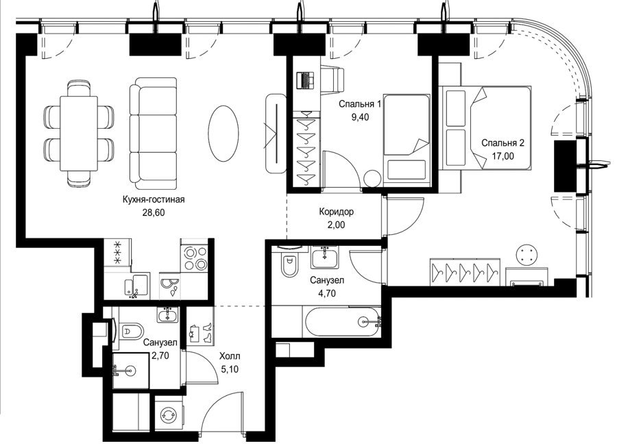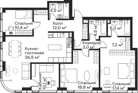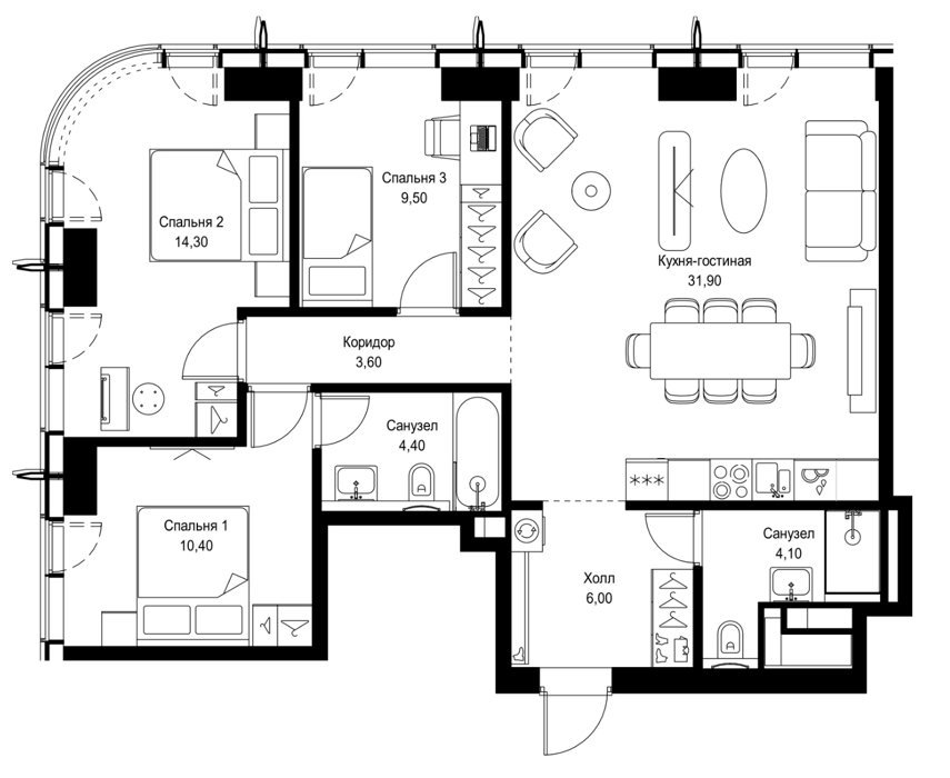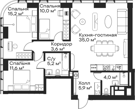 В комплексе предложено множество планировочных решений: в наличии квартиры, как классического типа, так и европланировки. Квартиры сдаются с подчистовой отделкой, высотой потолков 3 м и панорамным остеклением в пол.