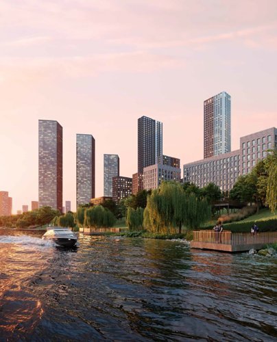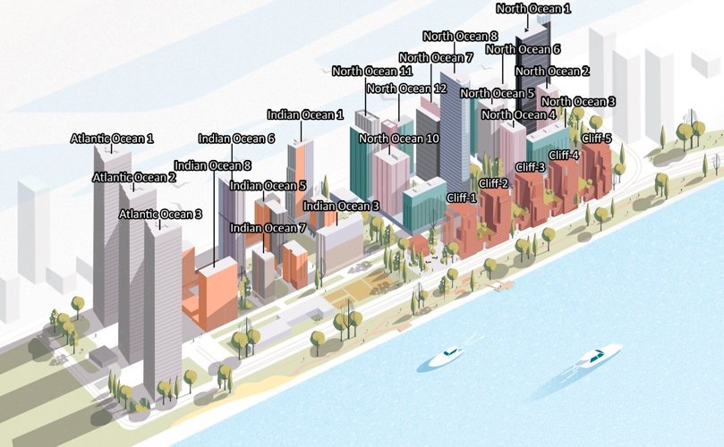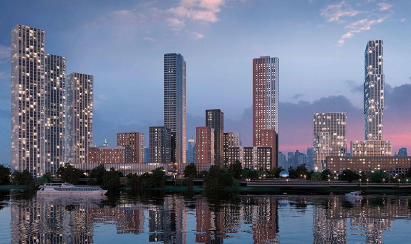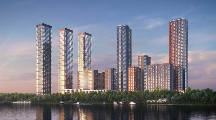 Проект представляет собой квартальную застройку в стиле Нью-Йорка. Каждый квартал получил имя по названию одного из мировых океанов — Atlantic, Pacific, Indian, North. Корпуса высотой от 8 до 55 этажей образуют четыре закрытых двора, связанных бульваром и собственной набережной. Архитектурный проект разработан одно из ведущих бюро Москвы – Kamen. Дизайн входных групп разработан студией Jaime Beriestain (Испания), проект благоустройства — бюро Arteza.