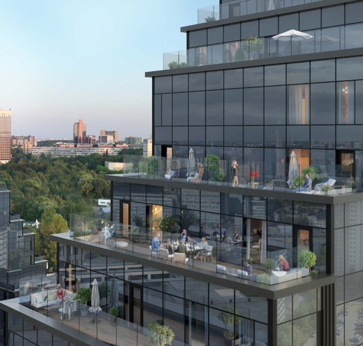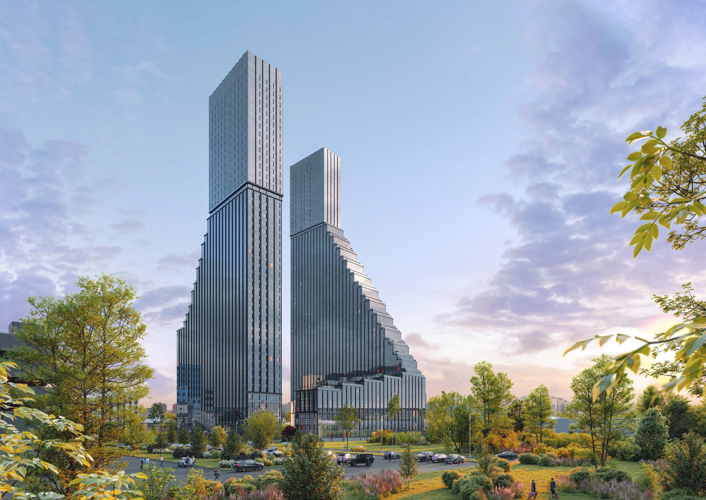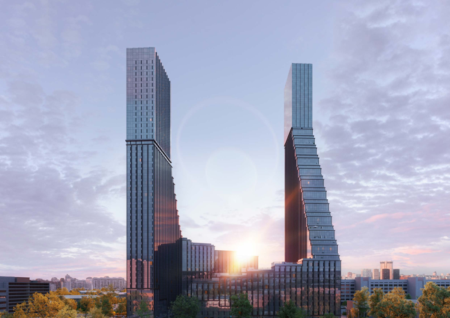 Жилой комплекс представляет собой современный проект архитектурного бюро «KAMEN Architects» включающий в себя 2 здания переменной этажности. Комплекс объединяет 2 зеркальные башни, возвышающиеся из общего каскадного основания. Выполнено фасадное остекление стен зданий. В корпусах установлены пассажирские и грузовые лифты.