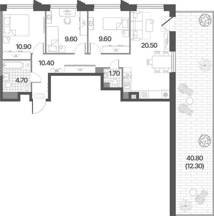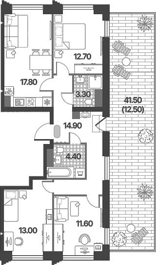 Площадь от 79.7 м2