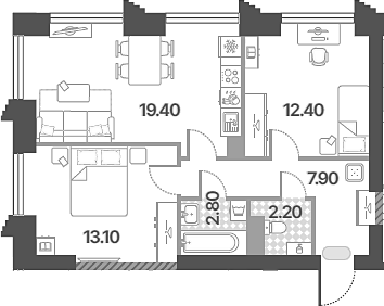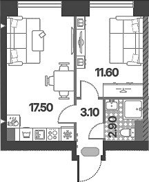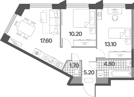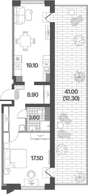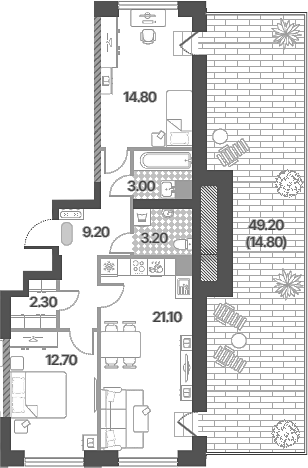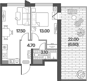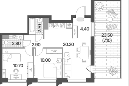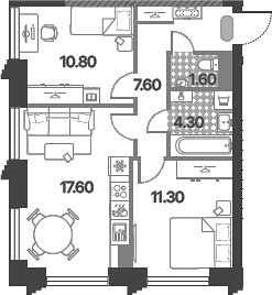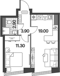 Площадь от 52.5 м2