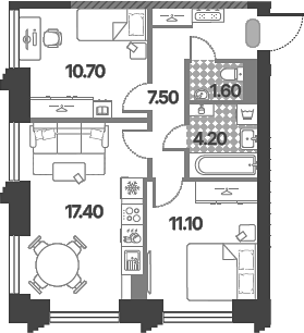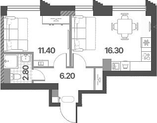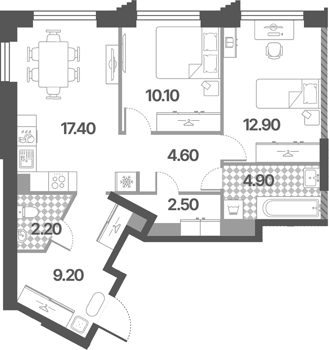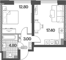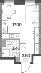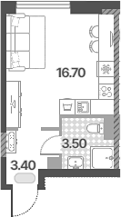 Площадь от 33.4 м2