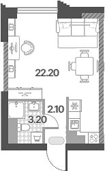 Площадь от 22.7 м2